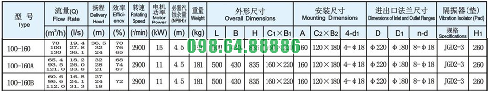 Máy bơm cấp nước trục đứng, bơm tăng áp, bơm lùa ISG100-160, IRG100-160 15kw, 100m3, 32m