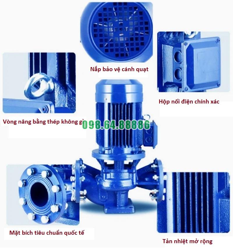 Bơm inline model ISG65-160A, IRG65-160A sử dụng nguyên lý ly tâm một cấp, với các đặc điểm sau: