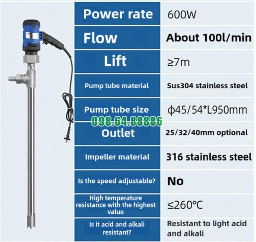 Bơm ống dài inox chịu nhiệt JDT-600W-G260