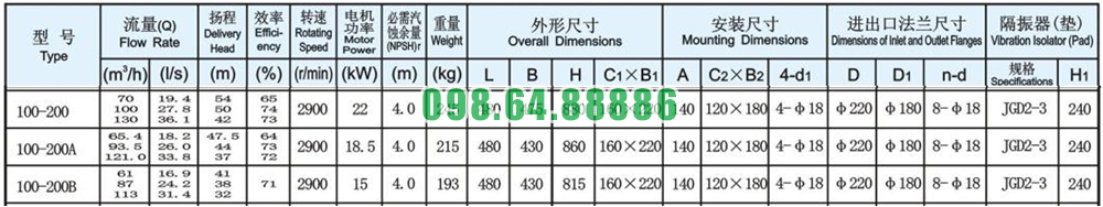 Máy bơm inline, bơm lùa, bơm ly tâm ISG100-200, IRG100-200 22kw, 100m3, 50m